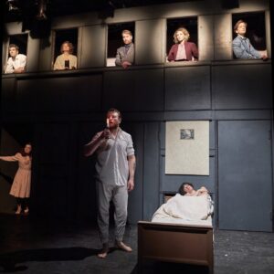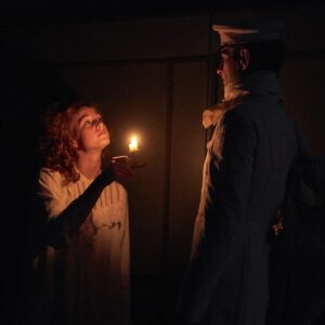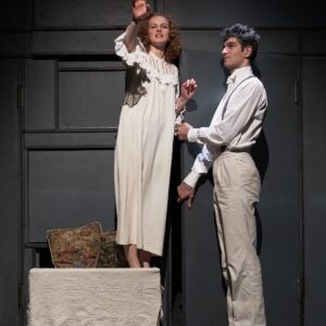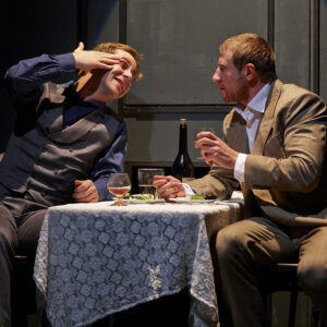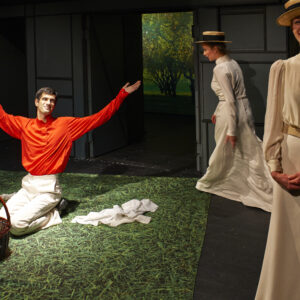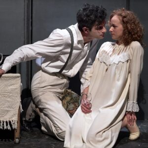 «…Разве бывает несчастная любовь? Разве самая скорбная в мире музыка не дает счастья?». Поэтически подробную бунинскую прозу молодые артисты «Мастерской Петра Фоменко» перенесли на сцену с большой нежностью. Через время и горе любовь героев жива в памяти, в мелочах – как велит «всесильный бог деталей, всесильный бог любви» — узкое запястье, каблучки уткнувшейся в пол легкой обуви, запах его головы внутри картуза…
