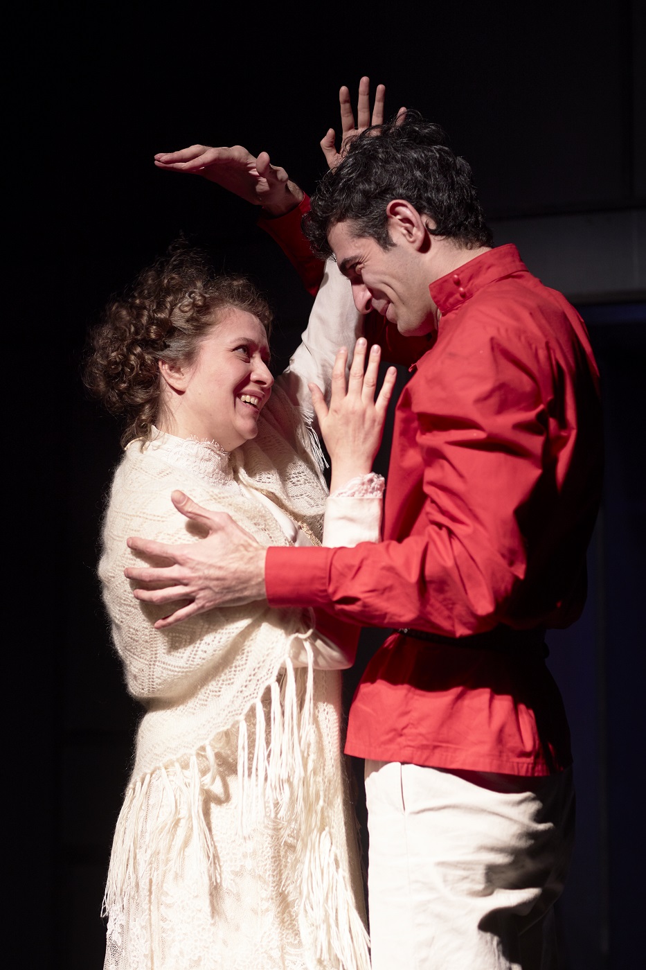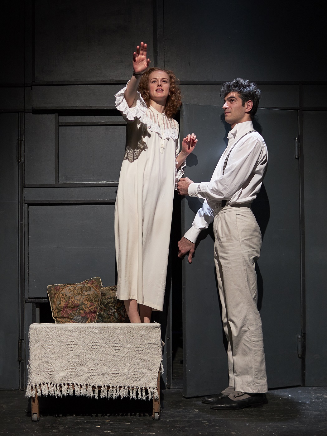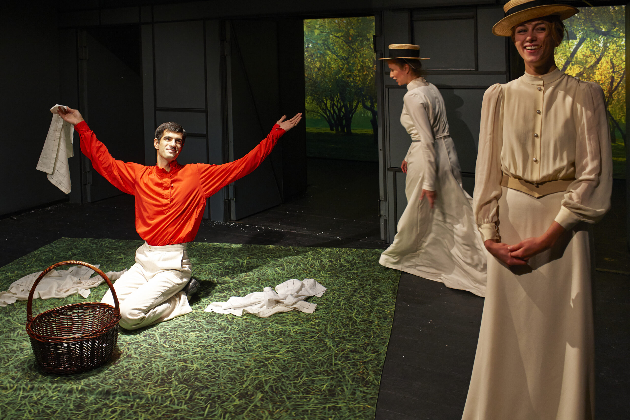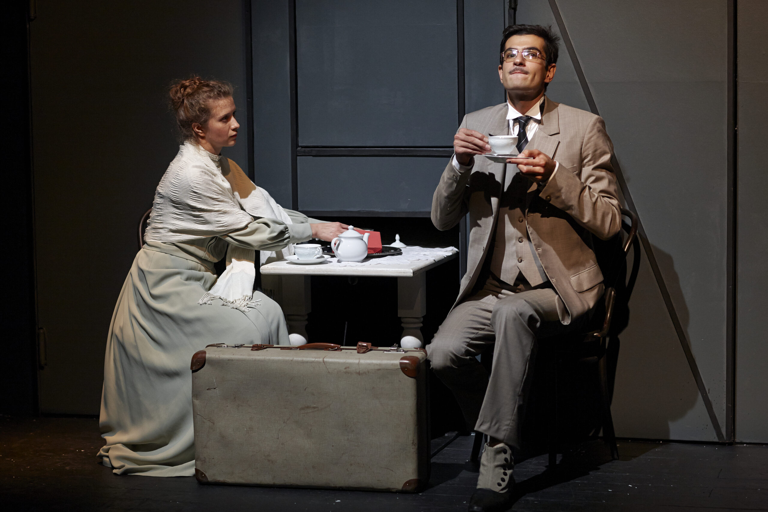 «…Разве бывает несчастная любовь? Разве самая скорбная в мире музыка не дает счастья?». Поэтически подробную бунинскую прозу молодые артисты «Мастерской Петра Фоменко» перенесли на сцену с большой нежностью. Через время и горе любовь героев жива в памяти, в мелочах – как велит «всесильный бог деталей, всесильный бог любви» — узкое запястье, каблучки уткнувшейся в пол легкой обуви, запах его головы внутри картуза…