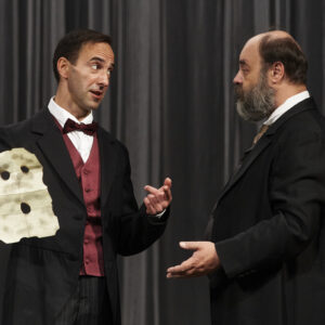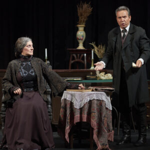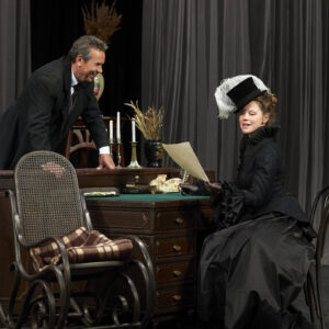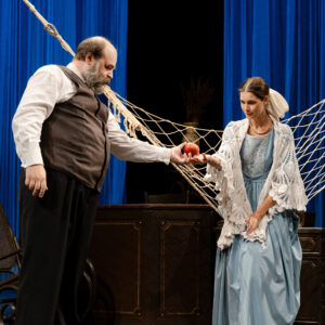 Этот спектакль, очень бережный по отношению к классику, открывает в произведении совершенно новые грани. Здесь и переливы света, и «разомкнутость» пространства, и легкая грусть, и поэзия ушедшего мира русской усадьбы — чеховский импрессионизм, и, конечно, юмор. Собственно сюжет пьесы — аферы с векселями — подается остро, подчас гротескно. Современные ассоциации не подчеркиваются режиссером, они приходят сами собой.